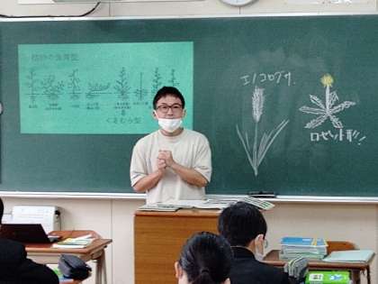小野先生が「タンポポはどんな所に生えているでしょうか?」と聞くと、子どもたちはいろいろな発言をしてくれます。