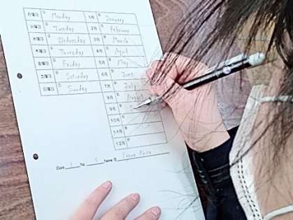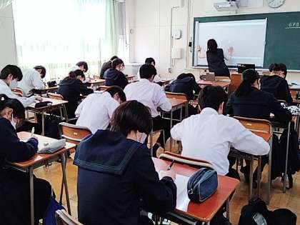 3年生の英語では単語テストをしています。授業開始後すぐに3分間で行っています。