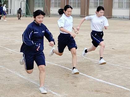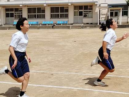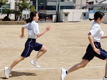 3年生女子の体育では体力テストの『50m走』の測定をしています。