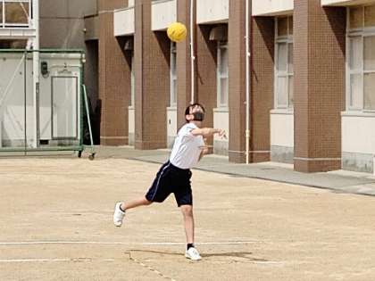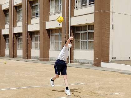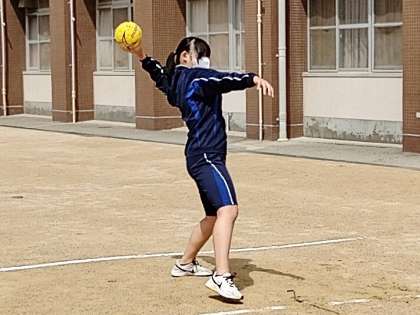 3年生女子の体育では、『ハンドボール投げ』の測定をしています。