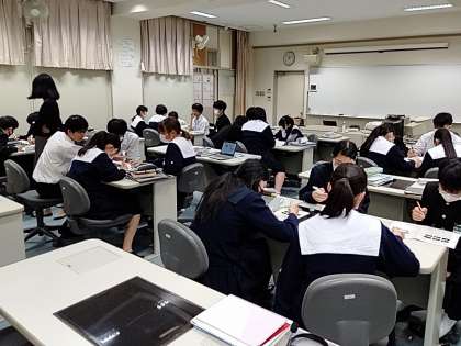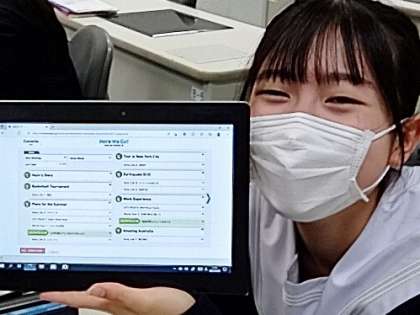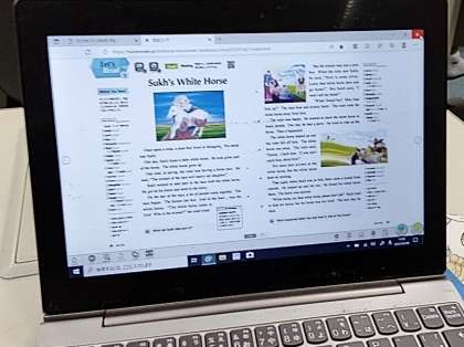 2年生の英語では、グループでデジタル教科書を使う練習をしています。