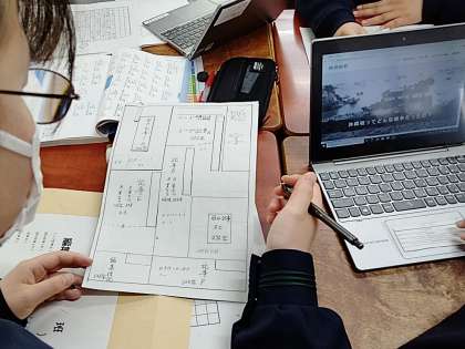 3年生は修学旅行の事前学習として、『壁新聞』を作っています。