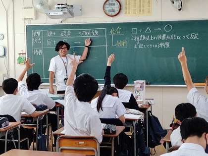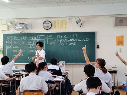 平山先生が質問すると、子どもたちは「1」や「2」や「3」などの手で挙手しています。