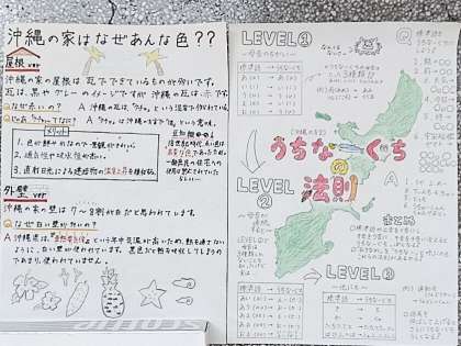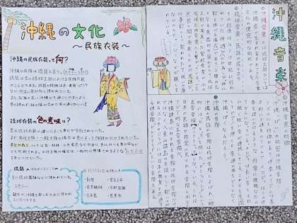 3年生の廊下には、一人ひとりの自主学習が掲示されています。
