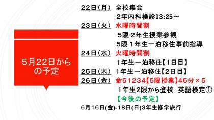 5月23日(火)の5時間目は2年生の授業参観となります。