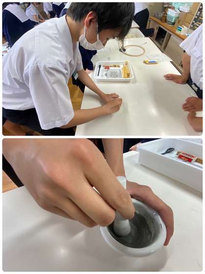 今日は鉄と硫黄の化合の実験を行いました。くさーい笑