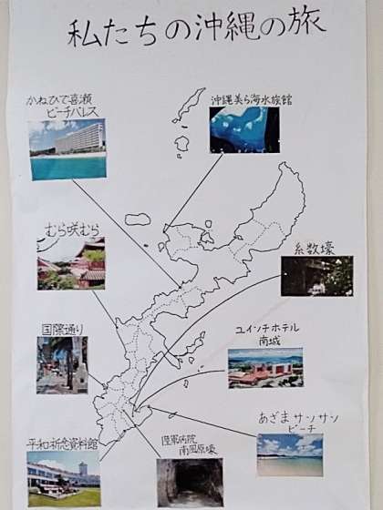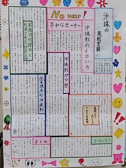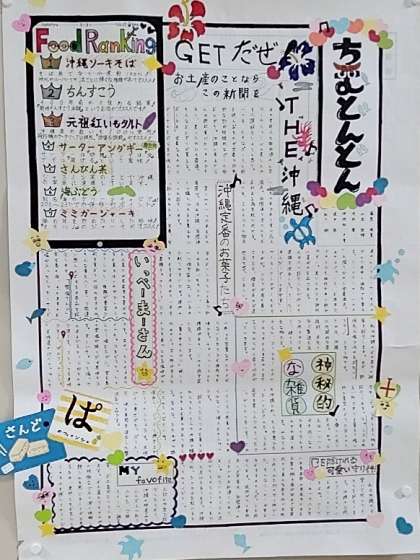 3年生の廊下には、沖縄を調べた壁新聞が貼ってあります。