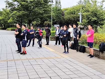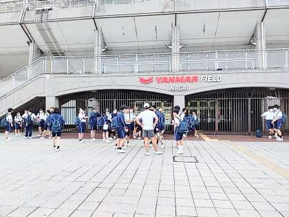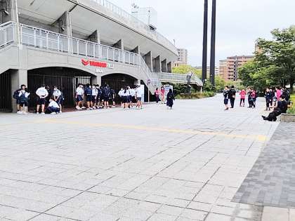 先発隊の生徒や先生たちは、もう長居競技場に到着しています。