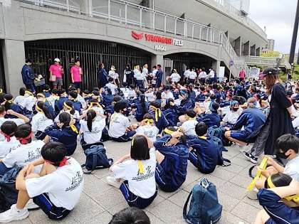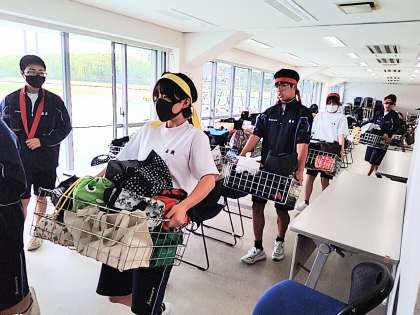 全員がハチマキをもらい気合を入れます!