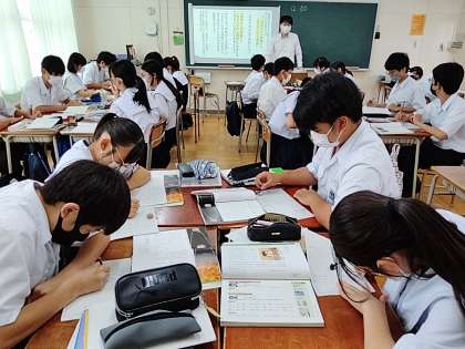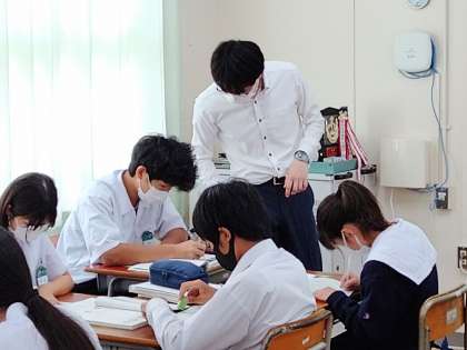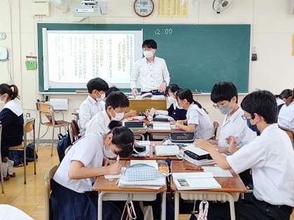 2年生の国語でも、教育実習生が前に立っていますね〜。