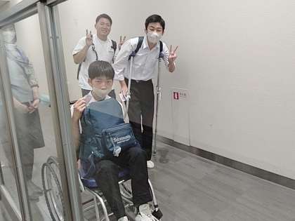 車イスと松葉づえの子どもたちは優先的に、先に乗り込みました。