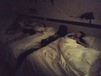素敵なホテルの高級ベッドで、子どもたちは気持ち良さそう寝ています。