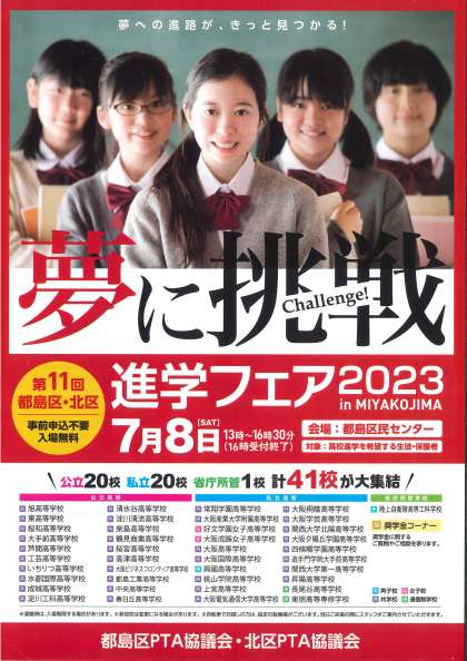進学フェア2023 in MIYAKOJIMAが7月8日(日)の13時〜16時30分の予定で都島区民センターにて行われます。