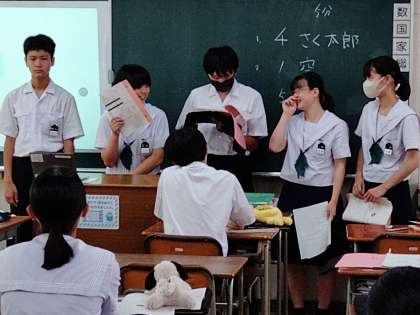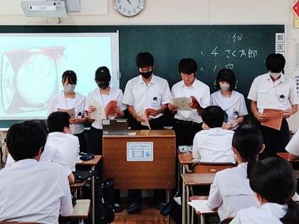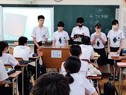 3年生の家庭科では、以前実施した卵の育児疑似体験の最終発表を行っています。