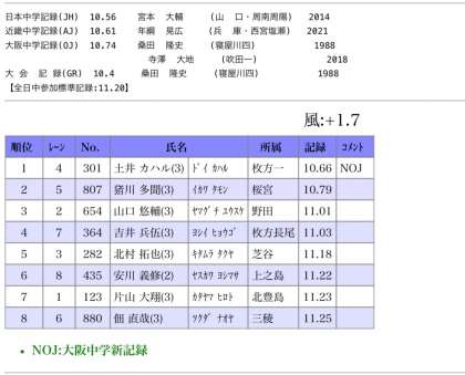 本日、16時10分第48回大阪中学校陸上競技選手権大会、100m男子共通の決勝レースが行われました。