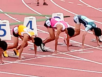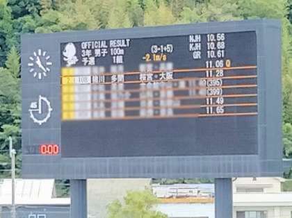 先ほど和歌山で行われている近畿大会100m予選で、猪川多聞君が走りました。
