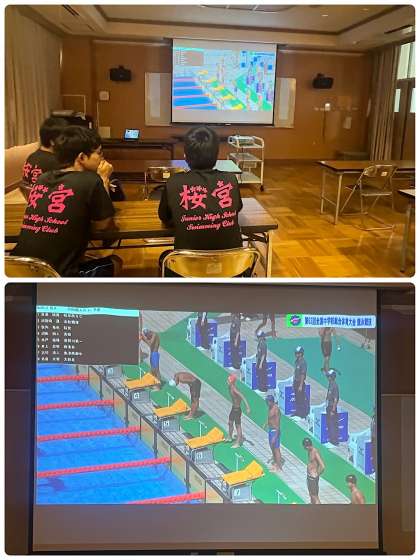 多目的室では水泳部の有志(活動はオフ)が応援にきています。