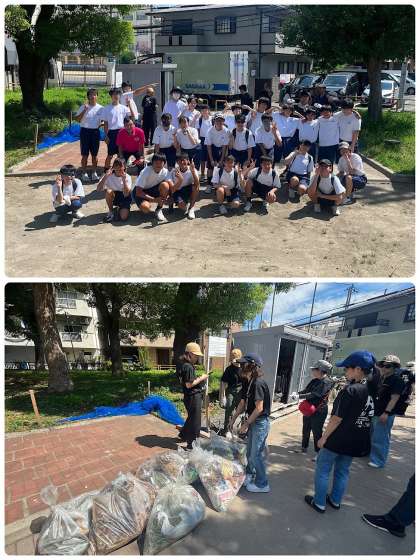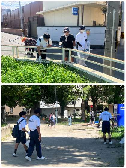 すさまじい暑さの中、生徒の皆さん、PTAの保護者の皆さん、地域の皆さんのご協力で無事に地域クリーン活動が終了しました。