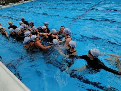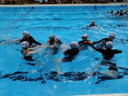 水中で綱引きをしています。