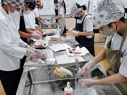 2年 家庭科『イワシの蒲焼き&イワシのつみれ汁』2