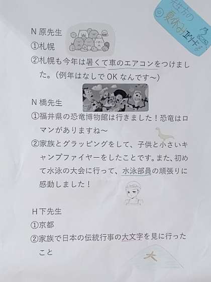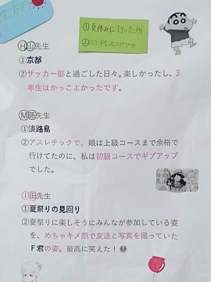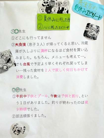 生徒会役員が、『この夏の思い出』を先生方にインタビューして、壁新聞にしてくれました。