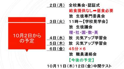 令和5年度 10月月中行事