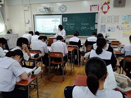 3年生の英語では、習熟度別少人数授業で2つの教室に別れて『GTEC対策』をしています。