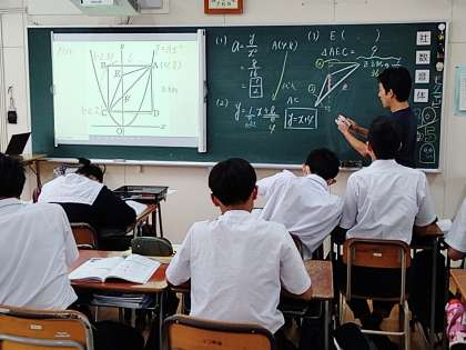 3年生の数学では、2つの教室に別れて習熟度別少人数で授業を進めています。