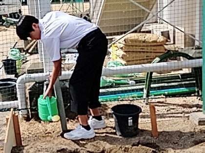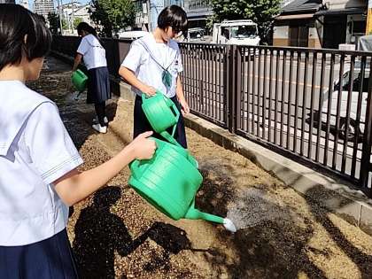 「どんどん大きくな〜れ!」という気持ちを込めて、水やりをしています。