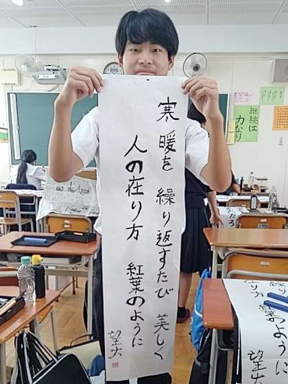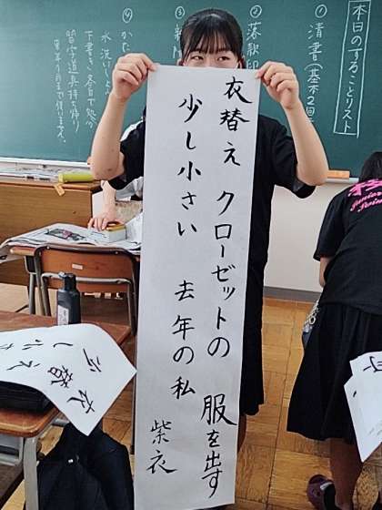 2年生の国語では『創作短歌』の清書を行っています。