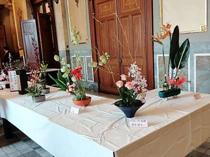 開会式で3年生の坂本さんが、華道部門を代表して表彰状を受け取りました。