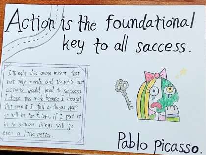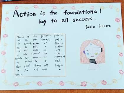 3年生の英語では『自分のお気に入りの格言を紹介しよう!』の仕上げを行っています。