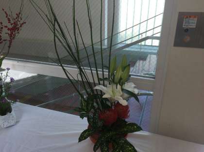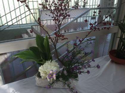 ・梅モドキ、ダリア、孔雀草、ドラセナ