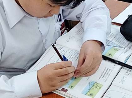 1年生の数学ではコンパスを使って作図をしています。