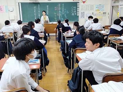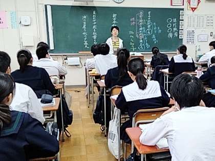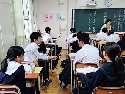 「はい、隣の人と相談して!」と山口先生が言うと、すぐに話し合っています。