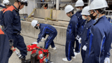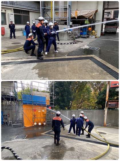 消火体験で、一人一人ホースの準備から放水作業を体験させていただいてます。