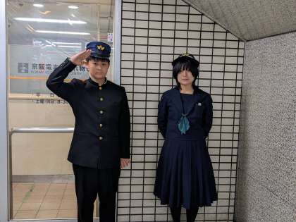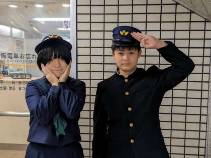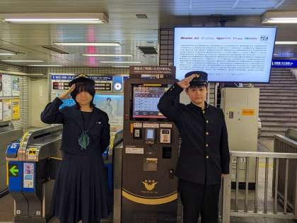 お忘れ物センターで荷物の仕分け中です。こんなに貴重な体験ができて嬉しいです、と張り切ってます!