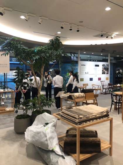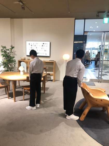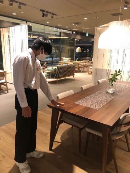 オープン準備の掃除を終えて、お客様を迎えるための最終チェックのお手伝いをしています。