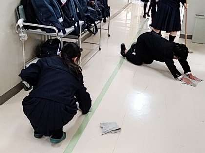 廊下も雑巾がけするので、ピカピカです。先生たちも毎日、子どもたちと一緒に頑張っています!