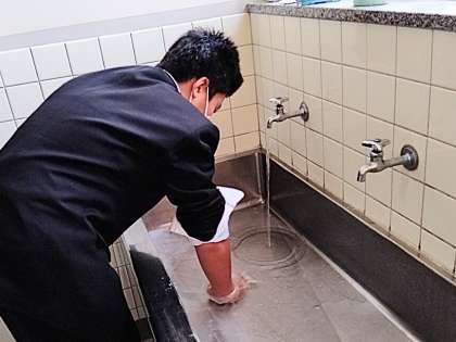 本校の子どもたちにとっては、当たり前の清掃風景です!