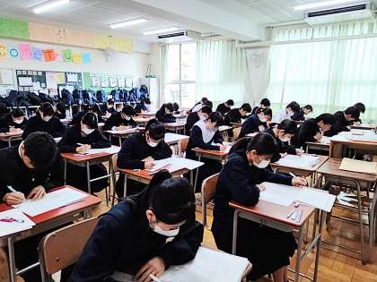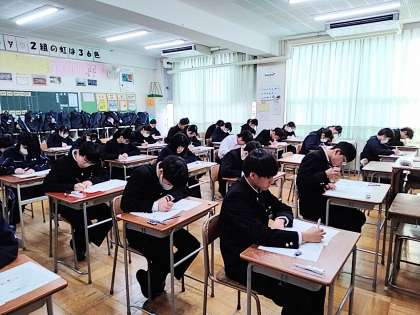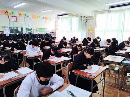 3年生の教室の様子ですが、全員が集中して答案用紙に向き合っています!