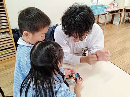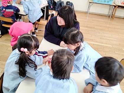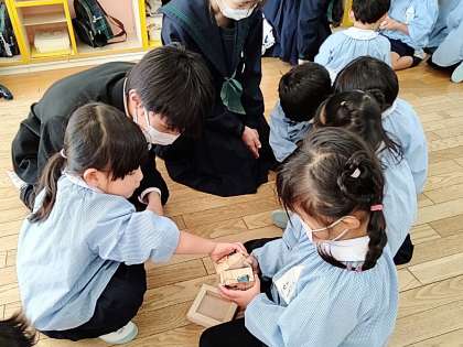 3年生の家庭科では毎年恒例となった保育実習で『育生幼稚園』へ行かせていただきました。