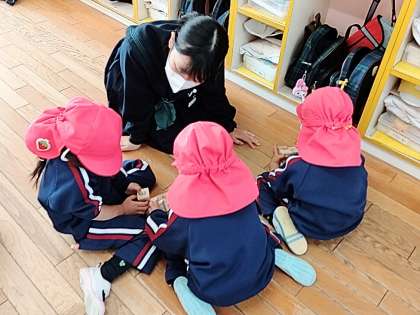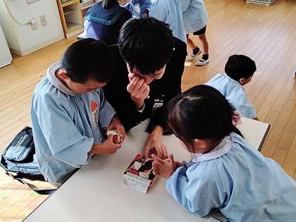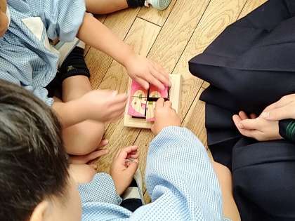 授業中に作った木製パズルを今年もプレゼントして、一緒に遊びました。
