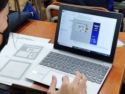 タブレットを使って、プログラミングを体験しました。