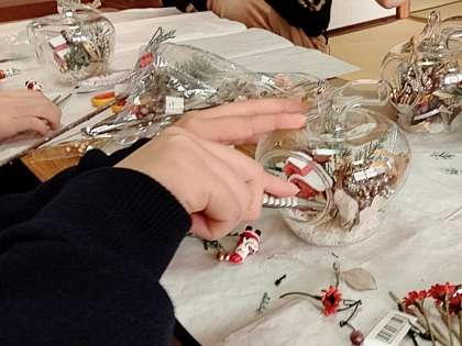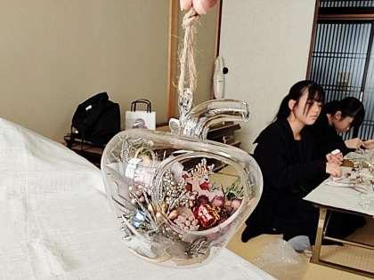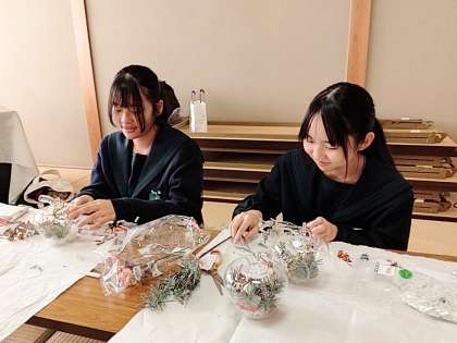 今日はクリスマスバージョンのフラワーアレンジに挑戦しました。
