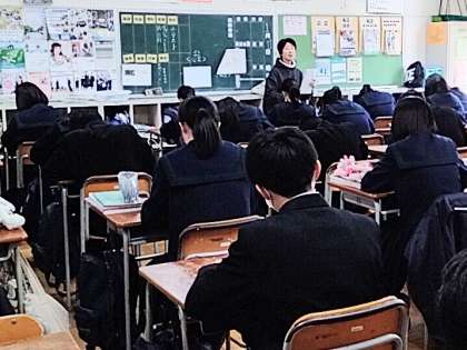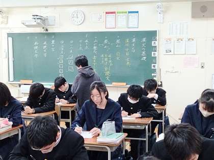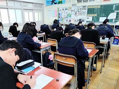 全員が教室の後ろを向いて、一生懸命にプリントに取り組んでいます。