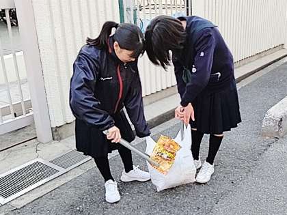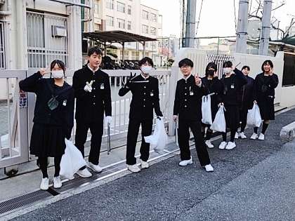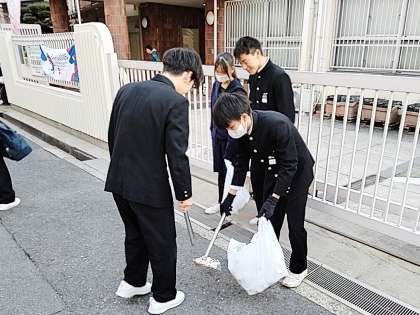 生徒会役員と委員長が早朝から学校周辺のゴミ拾いをしてくれています。