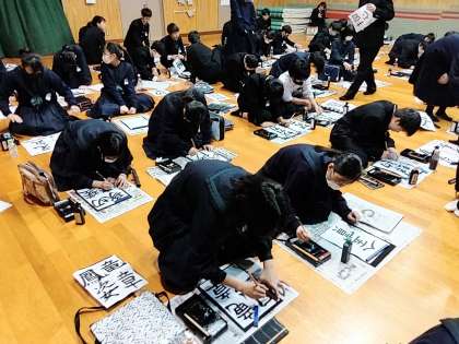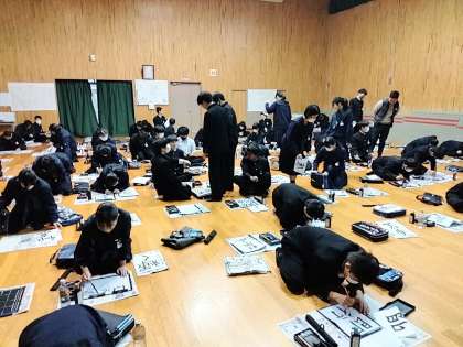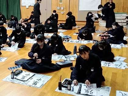 2時間目は、2年生が書き初め大会を行いました。