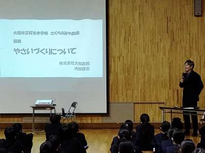 19日の午後には、大和農園の事業本部 本部長の内田健志さんにお越しいただき、『やさいのづくりについて』のご講演をいただきました。