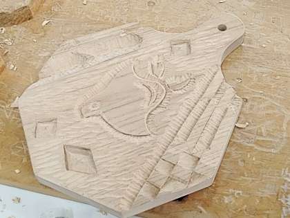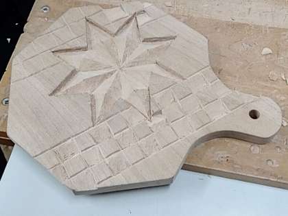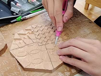 彫刻刀で苦労しながら彫っていますね〜。